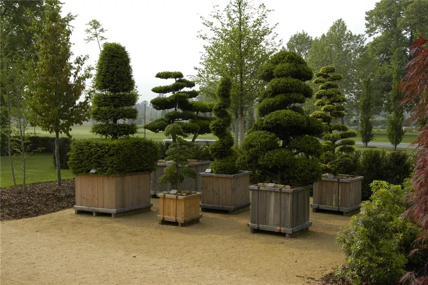 Formgehölze sind auch oft an öffentlichen Orten zu finden. Parks nutzen Formgehölze als Möglichkeit, Flächen mit vielen Gehölzen zu bestücken, ohne, dass es langweilig wirkt. Typische Beispiele sind da Ornamente oder gar komplette Labyrinthe. Da sich ein Labyrinth im eigenen Garten nur schwer umsetzen lässt und es wahrscheinlich an reichlich Platz mangelt, denkt der Gärtner beim Thema Formgehölze natürlich etwas kleiner. Ein einzelnstehender Baum hier, ein kleiner Busch im bunten Blumenbeet. Es muss nicht immer ein großer Park sein. Ein Weg durch den Garten lässt sich perfekt mit Formgehölzen einrahmen. Außerdem sind Formgehölze ideal dafür geeignet, weniger schöne Ecken im Garten zu kaschieren. Wächst an einer Stelle der Rasen nicht richtig? Einfach ein Formgehölz in der Nähe platziert und schon zieht das Formgehölz den Blick auf sich und weg von der kahlen Stelle im Rasen.