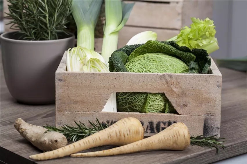 Brassica oleracea var. capitata var. sabauda Damit es mit der Lagerung klappt, kommt es ganz entscheidend auf das richtige Zusammenspiel folgender Faktoren an: Temperatur, Luftfeuchtigkeit sowie die Zusammensetzung und Bewegung der Luft. Ideal zum Lagern sind Temperaturen zwischen 2 bis 4 Grad Celsius bei einer relativen Luftfeuchtigkeit zwischen 85 bis 90 Prozent. Wurzelgemüse verträgt aber sogar Temperaturen unter dem Gefrierpunkt. Allerdings sollten die Früchte nicht im gefrorenen Zustand, sondern nur an einem frostfreien Tag aus dem Lager entnommen werden. Was die Luftzusammensetzung betrifft, sie sollte frei sein von Pilzsporen und Duftstoffen. Weil von Obst das Reifegas Ethylen freigesetzt wird, sollte man Obst nicht zusammen mit Gemüse lagern. Durch eine zu hohe Luftbewegung trocknet das Wurzelgemüse aus. Eine zu geringe Luftzufuhr kann Fäulnisbildung zur Folge haben.