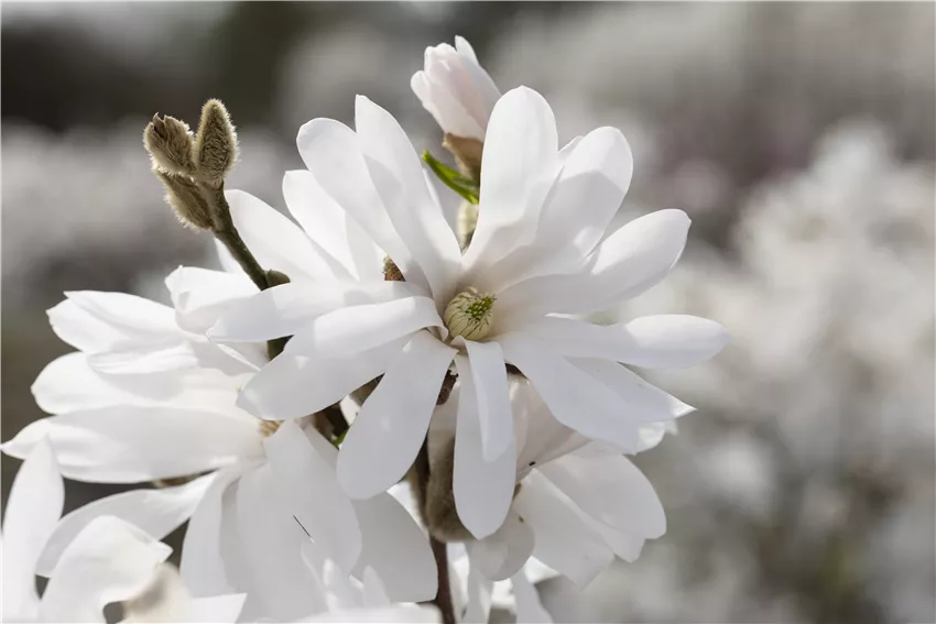 Magnolia stellata 'Royal Star' Wer mit den bunten Blüten nicht auf den Sommer warten will, kann sich mit frühblühenden Gehölzen ordentlich Farbe in den Garten holen. Containerpflanzen können fast zu jeder Jahreszeit gepflanzt werden, weil sie in der Topfkultur so viele Feinwurzeln ausgebildet haben, dass ihnen auch ein gefrorener Boden nichts ausmacht, wenn sie bereits blühen. Da sich aber in einen gefrorenen Boden nur sehr schwer ausrechend große Löcher graben lassen, um die Wurzelballen vollständig zu fassen, sollte der Boden vor dem Einpflanzen der Gehölze frostfrei sein. Frühblühende Schönheiten sind vor allem die Magnolie, der Rhododendron und die Kupferfelsenbirne. Bevor die Schönheiten eingepflanzt werden, sollte aber genau darauf geachtet werden, welchen Standort sie bevorzugen. Das ist von Pflanze zu Pflanze unterschiedlich.