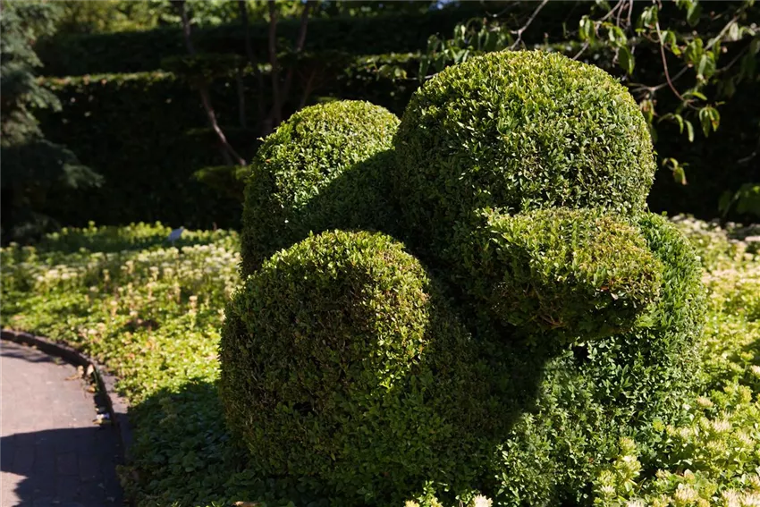 Der immergrüne Buchsbaum mit seinen kleinen ovalen Blättern wurde schon in der Antike gerne als Hecke und Skulpturpflanze gepflanzt und hat seither kein bisschen an Beliebtheit eingebüßt. Denn dadurch, dass der Buchs sehr langsam und dicht wächst, behält er lange eine gleichmäßige Form.