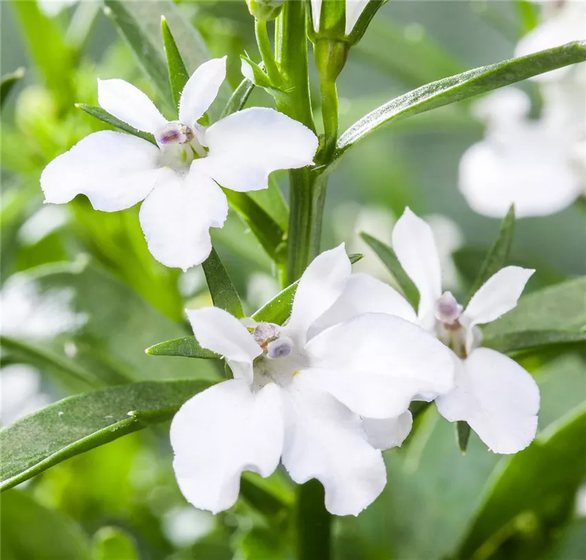 Lobelia erinus, weiß Männertreu sorgt im Sommer für einen bunten Blütenteppich im Garten. Die Pflanze mit den filigranen Blüten ist eine Bereicherung für jeden Garten.