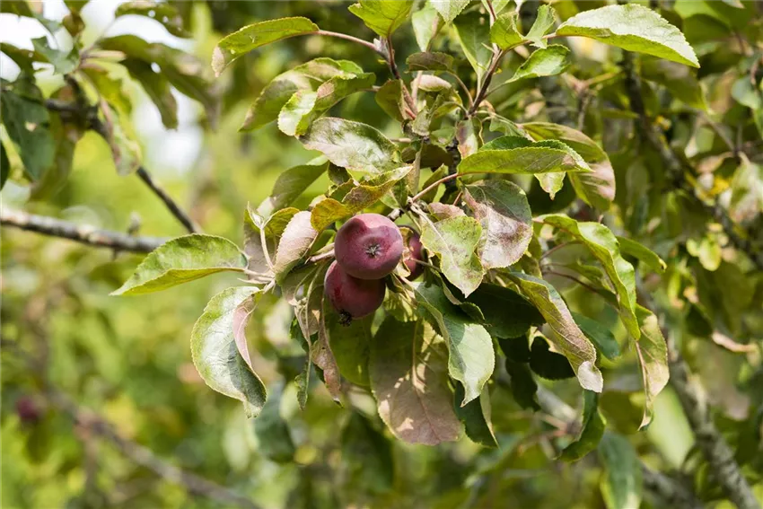 Malus domestica 'Topaz'(s) Es muss nicht gleich eine Streuobst-Wiese sein. Aber leckere Früchte aus dem eigenen Garten zu ernten macht Spaß. Manch kann sie an Ort und Stelle verzehren oder erst einmal in die Küche bringen, um sie später in weitere Köstlichkeiten zu verwandeln. Brotaufstriche und Desserts stehen an oberster Stelle. Für die optimale Ernte sorgt der Sommerschnitt für Obstbäume. Denn er lenkt die natürlichen Kräfte der Bäume in die richtigen Bahnen. Im Gegensatz zur gleichen Tätigkeit im Winter sorgt der Sommerschnitt für Obstbäume dafür, dass das Wachstum langsamer verläuft. Die Pflanze steckt ihre Energie nicht in die Weiterentwicklung ihres Gesamtvolumens, sondern in die Produktion von Flor und Früchten, weil sie mehr Licht und Luft bekommt. Der Gartenbesitzer erntet Obst mit intensiverem Geschmack, noch dazu in größeren Mengen. Wer die Spender von Apfel, Birne & Co in praktischer Zugriffshöhe halten will, fährt mit dem Sommerschnitt für Obstbäume ebenfalls gut. Vor allem Obstbäume kurz nach der Anpflanzung brauchen diese Pflege. Warum? Sie sollen die richtige Balance zwischen Wurzel und Baumkrone entwickeln. Wenn der Sommerschnitt für Obstbäume nicht erfolgt, bilden sie ihre Wipfel meistens einseitig aus. Die unteren Äste bleiben in der Entwicklung zurück, und es entsteht die Gefahr der „Vergreisung“. Das bedeutet, dass die nicht zurückgeschnittenen Triebe zu früh tragen. Der junge Baum ist überfordert und beim Hervorbringen frischer Triebe gehemmt.